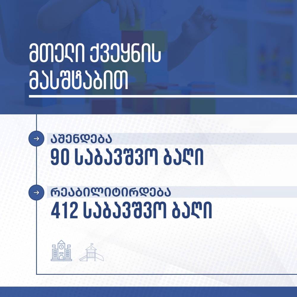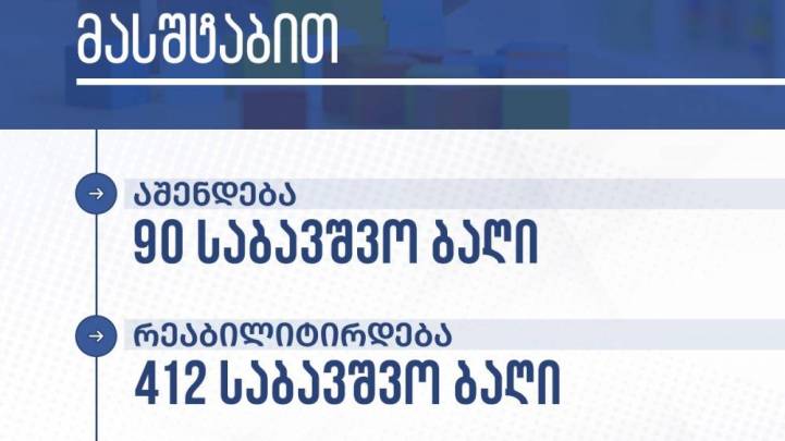 მთელი ქვეყნის მასშტაბით აშენდება 90 და რეაბილიტირდება 412 საბავშვო ბაღი.