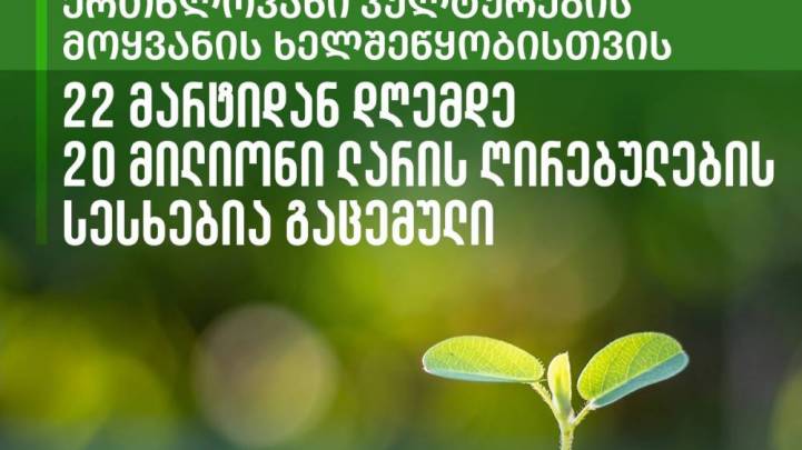 ერთწლოვანი კულტურების მოყვანის ხელშეწყობისთვის, სახელმწიფო პროექტის ფარგლებში, 22 მარტიდან დღემდე, 20 მილიონი ლარის ღირებულების სესხებია გაცემული.
