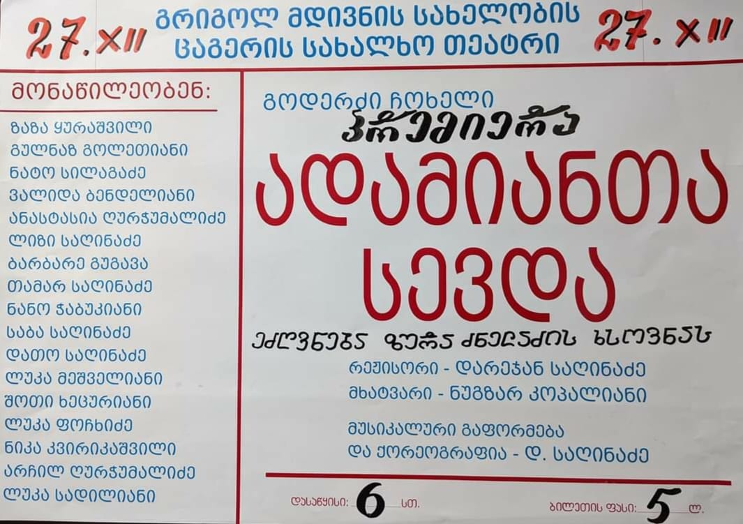 7 დეკემბერს, ცაგერის გრიგოლ მდივნის სახელობის სახალხო თეატრი გიწვევთ სპექტაკლის პრემიერაზე: