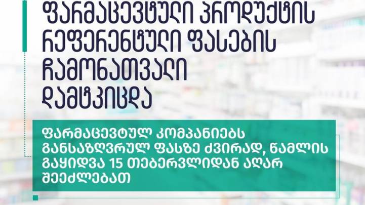 ფარმაცევტულ კომპანიებს, განსაზღვრულ ფასზე ძვირად, წამლის გაყიდვა 15 თებერვლიდან აღარ შეეძლებათ