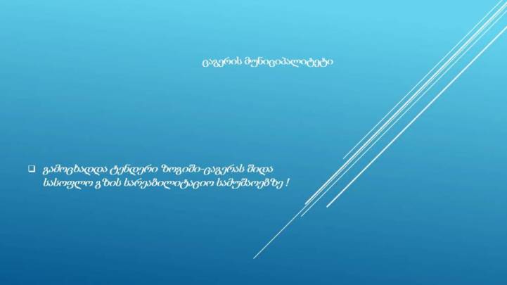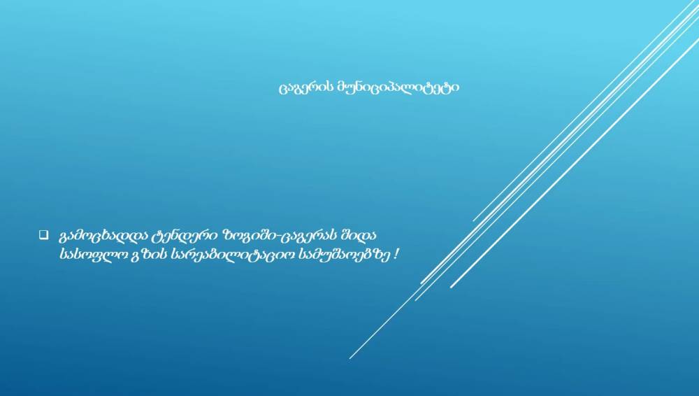 გამოცხადდა ტენდერი სოფელ ზოგიში-ცაგერას შიდა სასოფლო გზის სარეაბილიტაციო სამუშაოების შესყიდვაზე (პირველი ეტაპი).