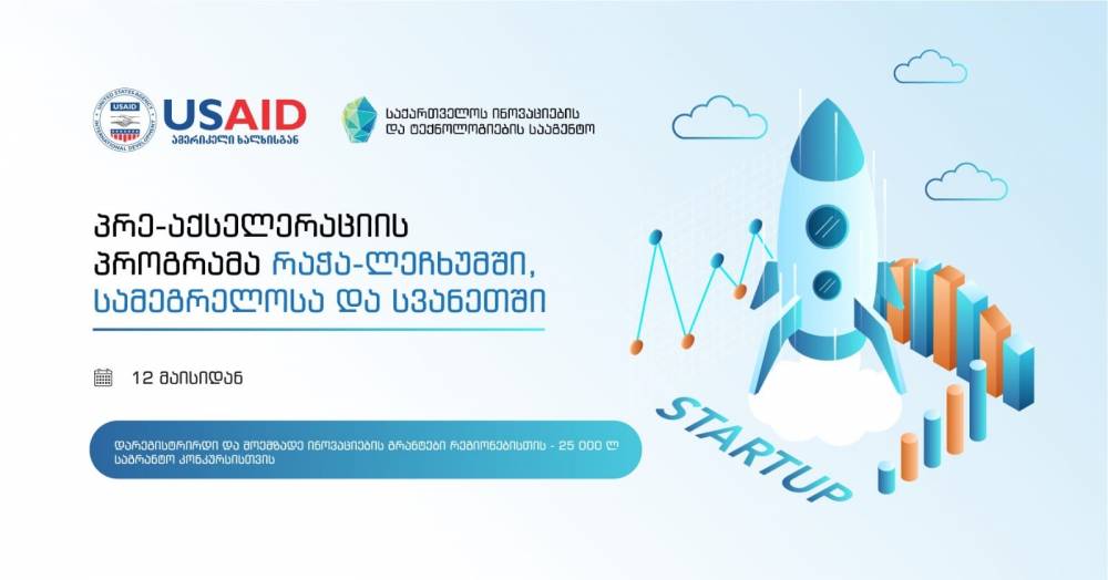 საქართველოს ინოვაციების და ტექნოლოგიების სააგენტოს ინიცირებით და USAID-ის ფინანსური მხარდაჭერით, ძლიერი სოფლის პროგრამის ფარგლებში, ცხადდება პრე-აქსელერატორის პროგრამის პირველი ეტაპი, სამეგრელოში, სვანეთში და რაჭა-ლეჩხუმში