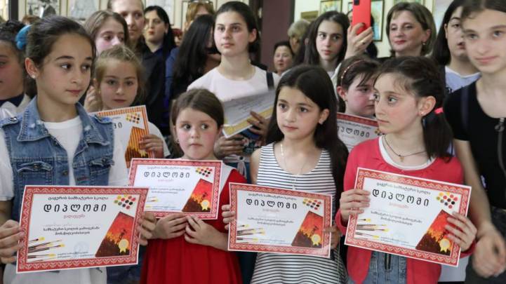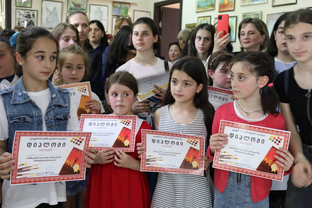 ცაგერის მუნიციპალიტეტის მერმა ლევან ზალკალიანმა დიპლომები გადასცა გამოფენაში მონაწილე ნორჩ მხატვრებს და წარმატებები უსურვა მათ.