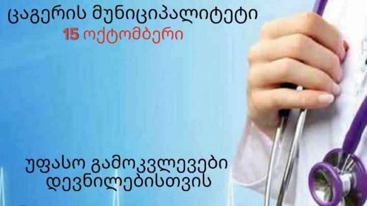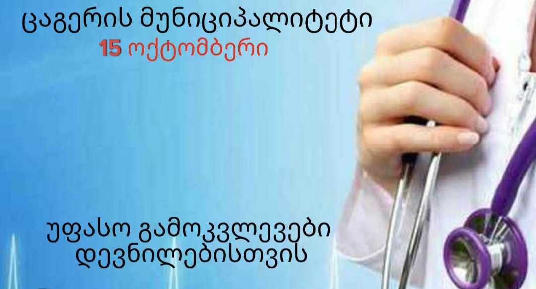 15 ოქტომბერს ცაგერის რეგიონული ჯანდაცვის ცენტრში აფხაზეთის ა/რ ჯანმრთელობისა და სოციალური დაცვის სამინისტროს მიერ, ჯანდაცვის აქცია განხორციელდება