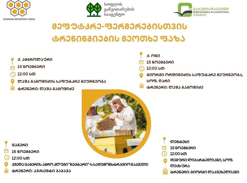 ა(ა)იპ სოფლის განვითარების სააგენტოს, რაჭა-ლეჩხუმისა და ქვემო სვანეთის რეგიონული სამსახურის, გარემოსდაცვითი ინფორმაციისა და განათლების ცენტრის და საქართველოს მეფუტკრეთა გაერთიანების ორგანიზებით, მეფუტკრე ფერმერებისთვის ტრენინგების მეოთხე ფაზა იწყება.