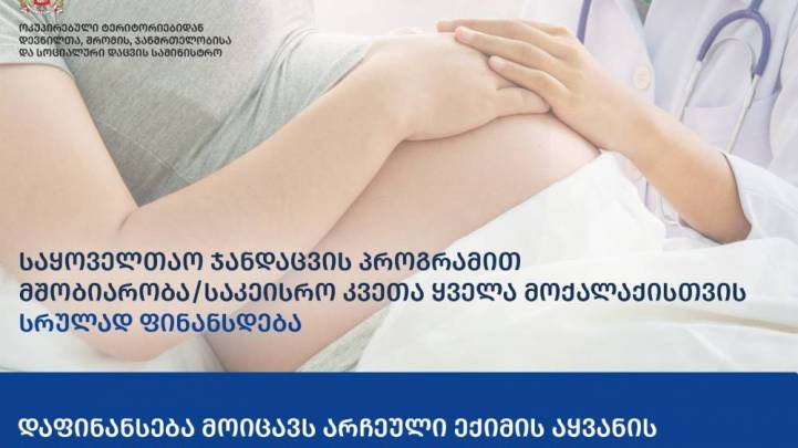 საყოველთაო ჯანდაცვის პროგრამის ფარგლებში, მშობიარობა და საკეისრო კვეთა, ყველა მოქალაქისთვის სრულად ფინანსდება