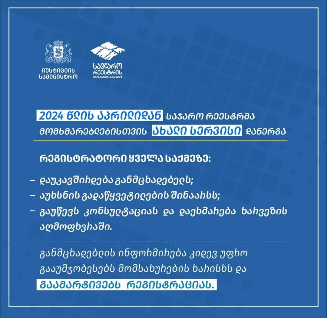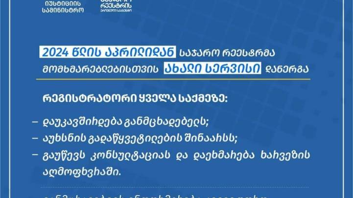 საჯარო რეესტრმა მომხმარებლებისთვის ახალი სერვისი დანერგა