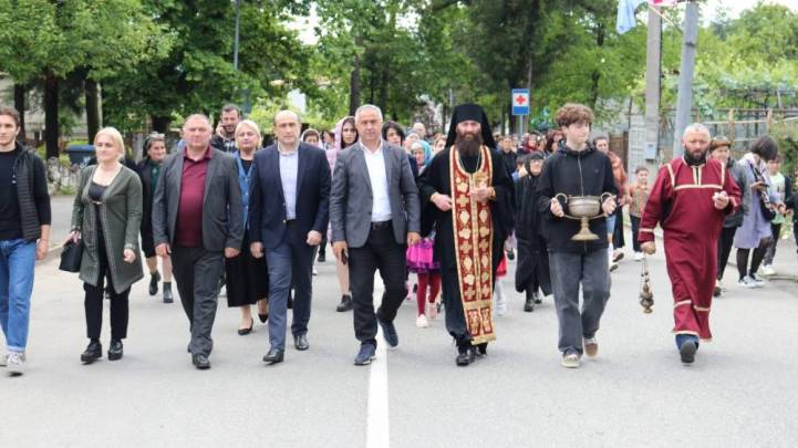ცაგერის ღვთისმშობლის მიძინების საკათედრო საკათედრო ტაძარში აღევლინა პარაკლისი, საიდანაც მრევლმა მსვლელობით გადაინაცვლა მაქსიმე აღმსარებლის სახელობის მონასტერში.