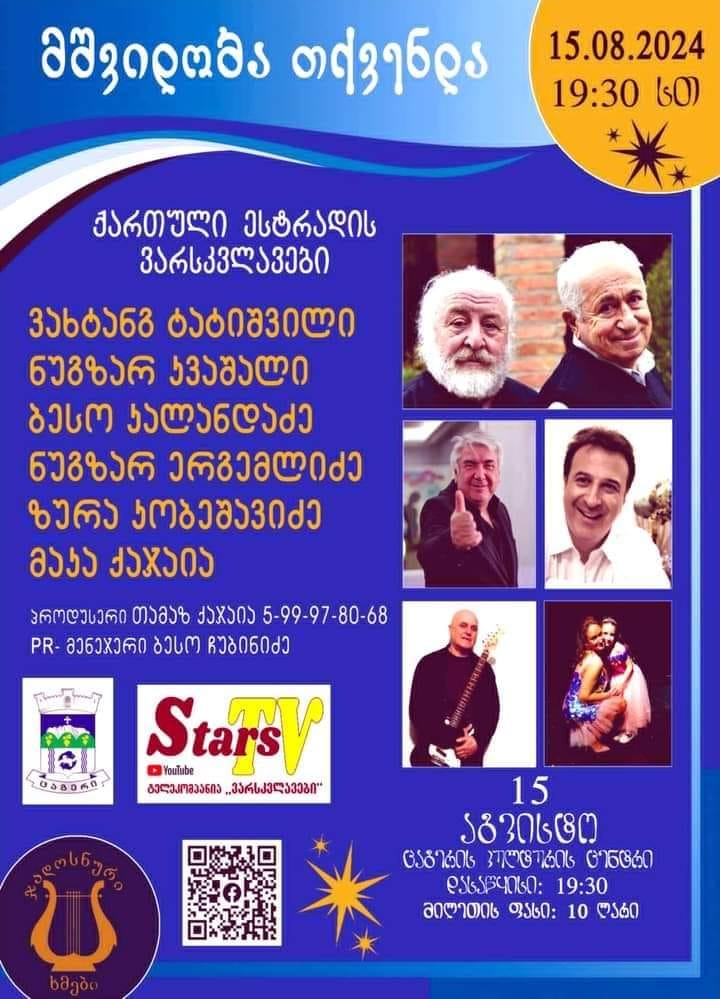 15 აგვისტოს ცაგერის კულტურის ცენტრში გაიმართება ქართული ესტრადის ვარსკვლავების კონცერტი