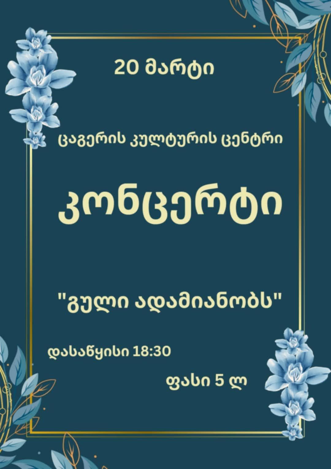 20 მარტს ცაგერის კულტურის ცენტრში გაიმართება საგაზაფხულო კონცერტი.