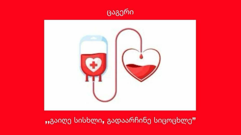 16 ოქტომბერს, ქალაქ ცაგერში, ,,სისხლის გადასხმის საქალაქო სადგური’’ სისხლის უანგარო დონაციის აქციას გამართავს.