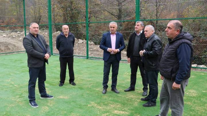 ცაგერის მუნიციპალიტეტის მერი, ჭაბუკი ჭაბუკიანი სოფელ ქულბაქში ხელოვნურსაფარიანი კომბინირებული სპორტული მოედნის მოწყობისთვის განხორციელებულ სამუშაოებს გაეცნო