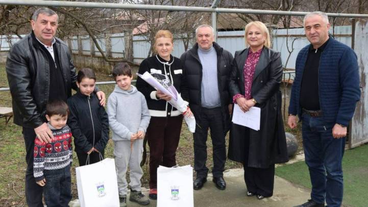 დედის დღე მრავალშვილიან ქალბატონებს ოჯახებში მიულოცეს, სიმბოლური საჩუქრები და ყვავილები გადასცეს