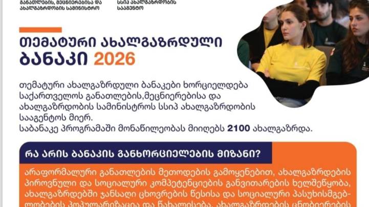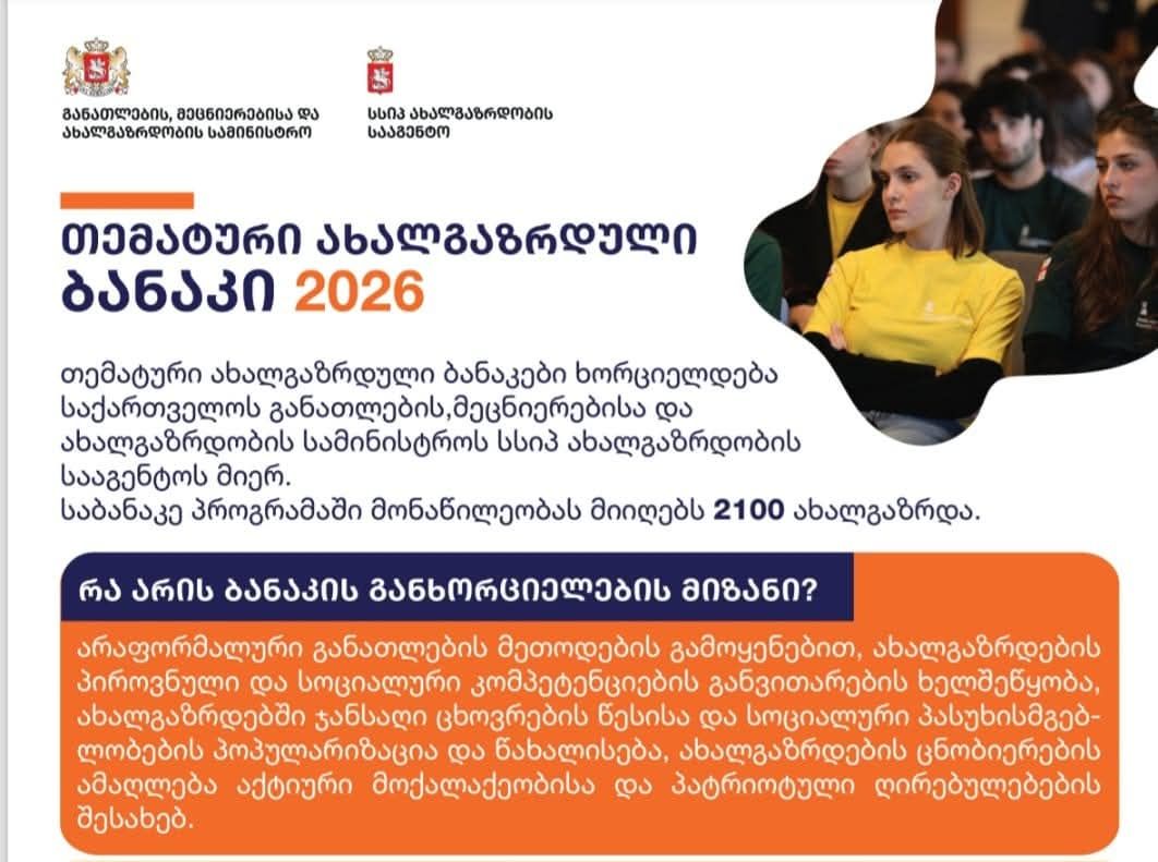 განაცხადები მიიღება 20 მარტის ჩათვლით. თემატური ბანაკი გაიმართება დაბა