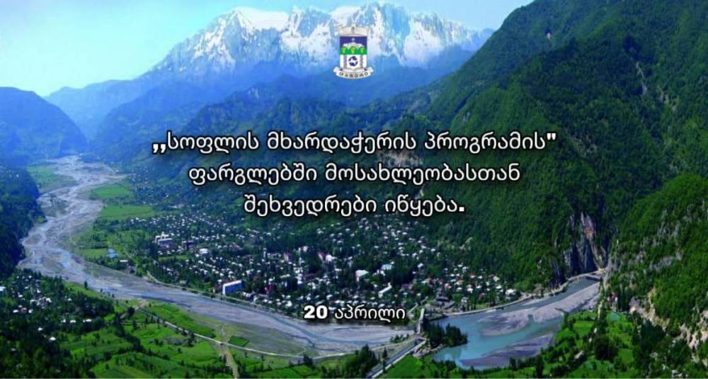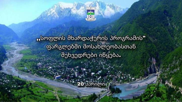 2026 წლის 20 აპრილს ცაგერის მუნიციპალიტეტში ,,სოფლის მხარდაჭერის პროგრამის" ფარგლებში მოსახლეობასთან შეხვედრები იწყება!