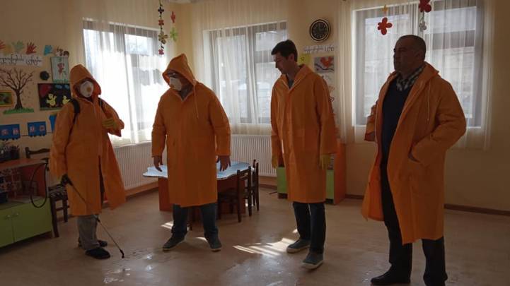 ჩატარდა ბაღების,მუნიციპალური ტრანსპორტის,რამდენიმე სკოლის,სხვადასხვა შენობების დეზინფექცირება.