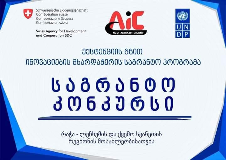 ფონდი „აფხაზინტერკონტი“ (AIC), საქართველოში გაეროს განვითარების პროგრამის (UNDP) „პროფესიული განათლების სისტემის მოდერნიზება საქართველოს სოფლის მეურნეობაში“ (UNDP/SDC VET) პროექტის ხელშეწყობით, აცხადებს ინოვაციების მხარდაჭერის საგრანტო პროგრამას.