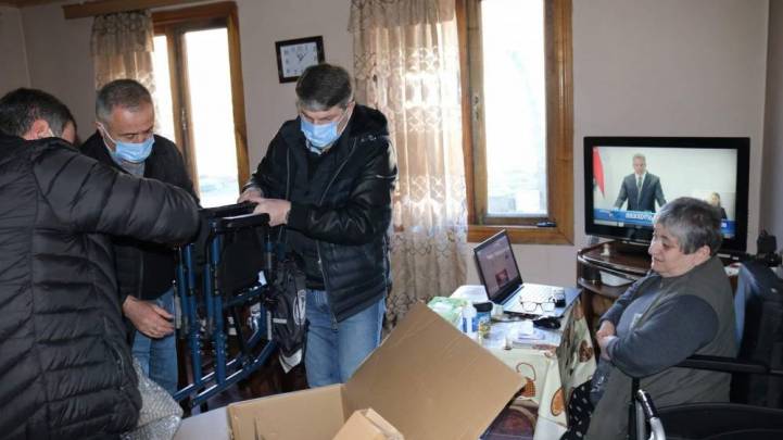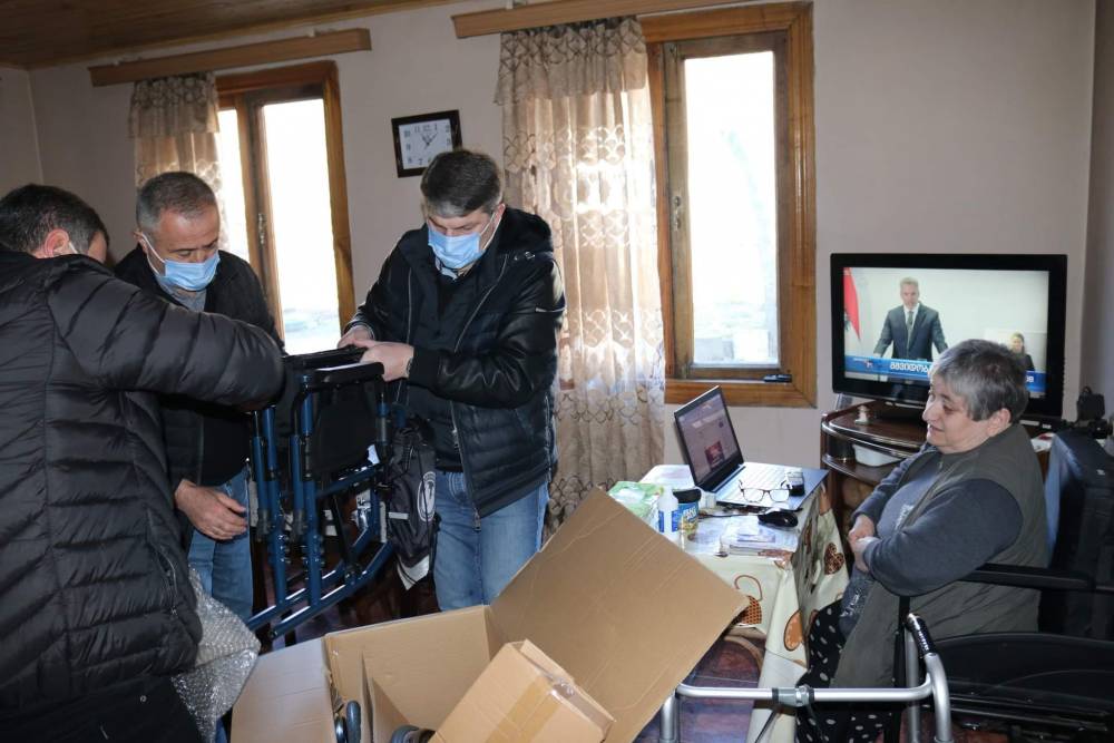 ცაგერის მუნიციპალიტეტის მერმა გიორგი ნემსაძემ,მოადგილეებთან-ალუდა თუთისანთან,რევაზ ახვლედიანთან და ჯანმრთელობისა და სოციალური სამსახურის ხელმძღვანელთან,დავით ჩაკვეტაძესთან ერთად,აღნიშნული ეტლები ოჯახებში გადასცა ქალაქ ცაგერში და ლეჩხუმის სოფლებში მცხოვრებ ბენეფიციარებს.