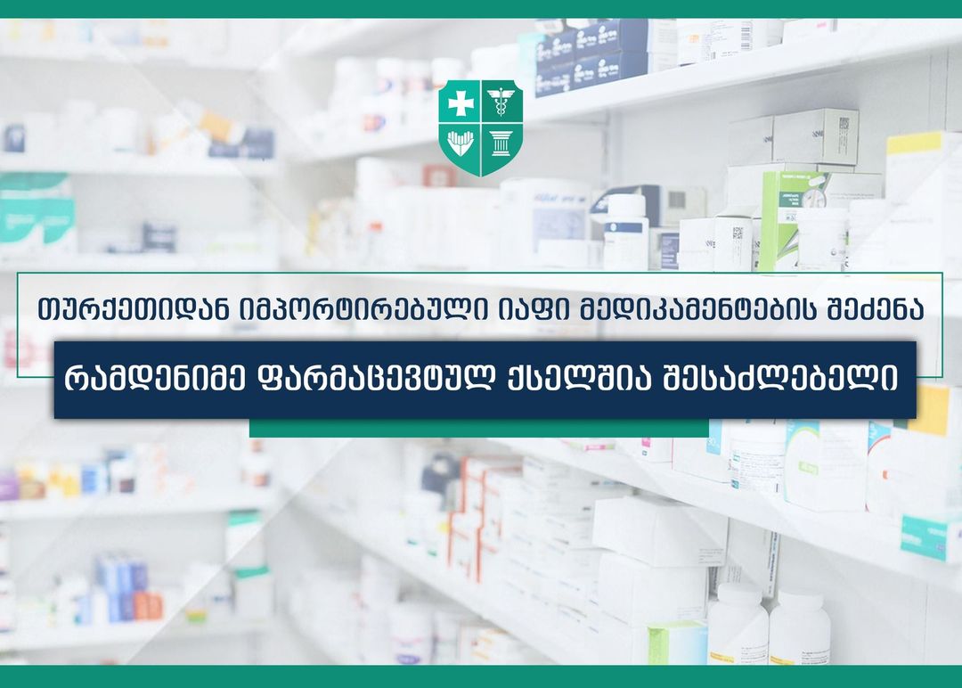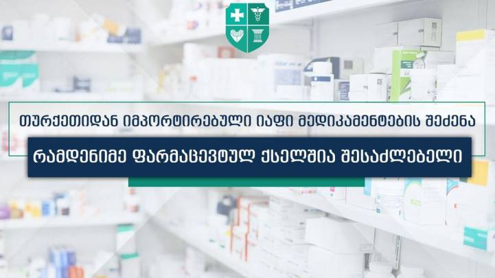 თურქეთიდან იმპორტირებული პრეპარატების ჩამონათვალსა და აფთიაქების მისამართებს, სადაც მათი შეძენა არის შესაძლებელი გაეცნობით ამ ბმულზე: https://www.moh.gov.ge/uploads/files/2022/15.03.22.pdf
